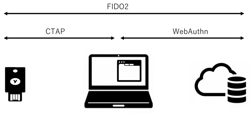 FIDO2は、ブラウザでパスキーを使うWebAuthnと、端末がパスキーを読み取るCTAPの2つの企画でできている。